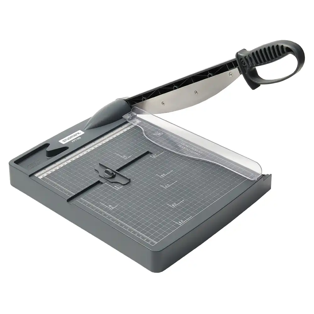 Para cortas las hojas de una forma cómoda y exacta, la mejor manera es usar la guillotina, que con las reglas y medidas puedes tener la mayor versatilidad al realizar tu trabajo.