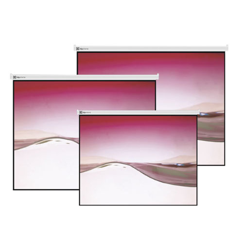 - Pantalla para proyección, operación manual y seguro automático para instalar en la pared o en el cielo raso